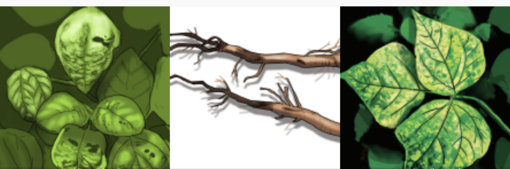 • Tij jèn plant yo fouye, yo gen anpil pwen nwa long epi yo kase plis maladi a ap devlope.
