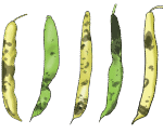 Nan jaden ki atake, pye pwa yo pa devlope byen, yo fletri epi yo gen yon koulè jòn (imaj 16). Pwa mi  anvan lè. Rasin plant yo bay yon koulè woz oswa kafe. Si w koupe rasin nan sans longè wap wè menm  koulè sa yo anndan li (imaj 18). Menm siy yo parèt nan baz tij la.